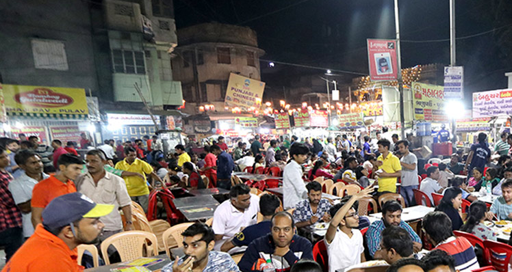 In the morning, it transforms into a bustling vegetable market, while in the afternoon, it becomes a hotspot for jewelry and textile trading. By night, the place turns into a famous street food market, serving mouthwatering Gujarati snacks, pav bhaji, dosas, and sweets that attract both locals and tourists.