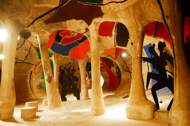 The word “Gufa” means cave in Gujarati, and this art gallery truly feels like a cave — with its circular domes, irregular shapes, and organic interiors. The walls are adorned with vibrant murals, sculptures, and paintings by M.F. Husain, reflecting themes of Indian folklore, mythology, and rural life.